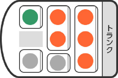 (+●で6名) - ●適正乗車席(4〜5名)