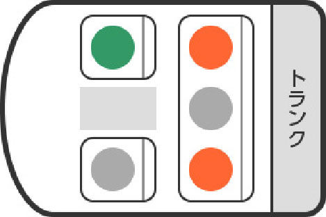 (+●で4名) - ●適正乗車席(2名)