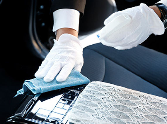 ハイヤー車両は、1運行毎に除菌スプレー(次亜塩素酸ナトリウム)を車内に散布し、消毒を強化しております。